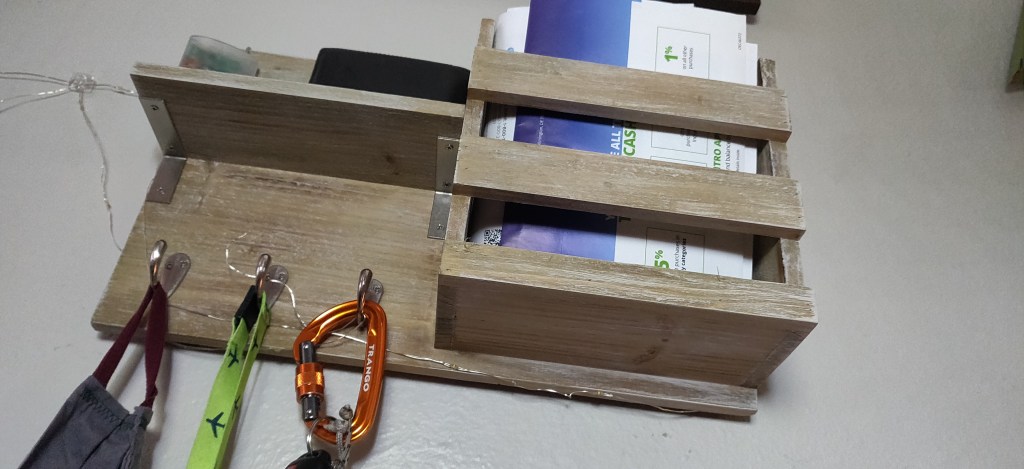 Description: Welcome home your new Mail & Key Organizer! It has a small shelf on top for whatever you need. With a small area for your Mail to the right, you’ll always have letters just in arms reach. Looking to put your keys somewhere? There is 3 hooks for hanging just underneath the shelf for ease of use. Mounting this is also really simple with the inlay of nail holes in the back. With its light weight and beach washed colors, it won’t overwhelm any room or area looking for just another level of tidy