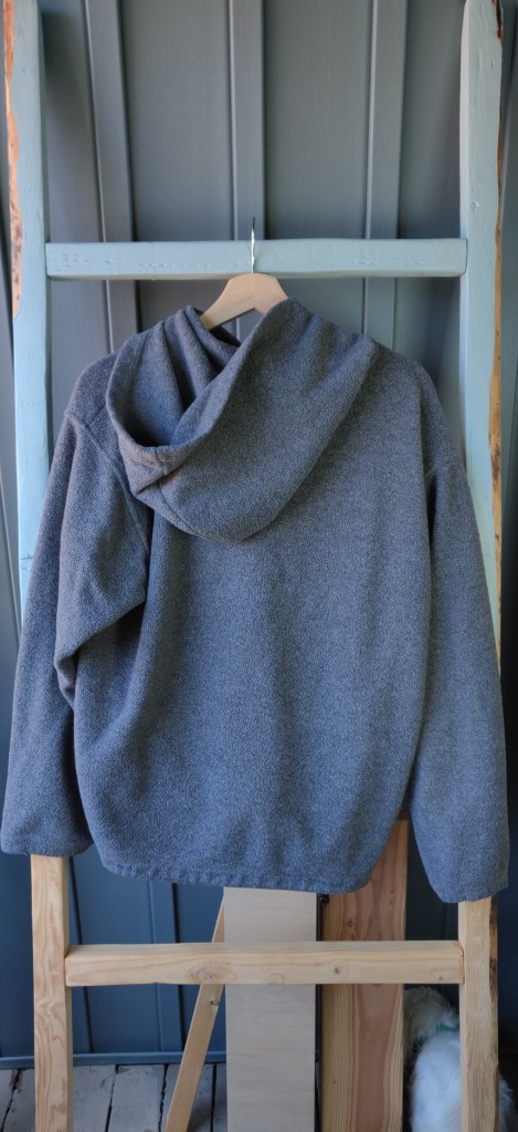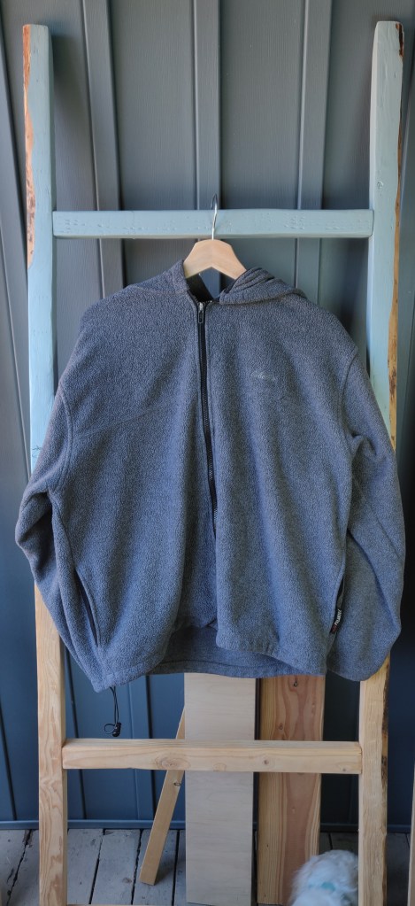 Want a fleece from a reputable company for the outdoors? Look no further than this grey fleece from Cabela’s! It is a older model, but the fleece is well kept and not matted. It comes with a hood for a cool walk in the hills or a rainy afternoon.