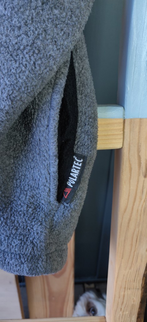 Description: Want a fleece from a reputable company for the outdoors? Look no further than this grey fleece from Cabela’s! It is a older model, but the fleece is well kept and not matted. It comes with a hood for a cool walk in the hills or a rainy afternoon. The lining is polartec, which is great for thermal stability on those cool walks out.